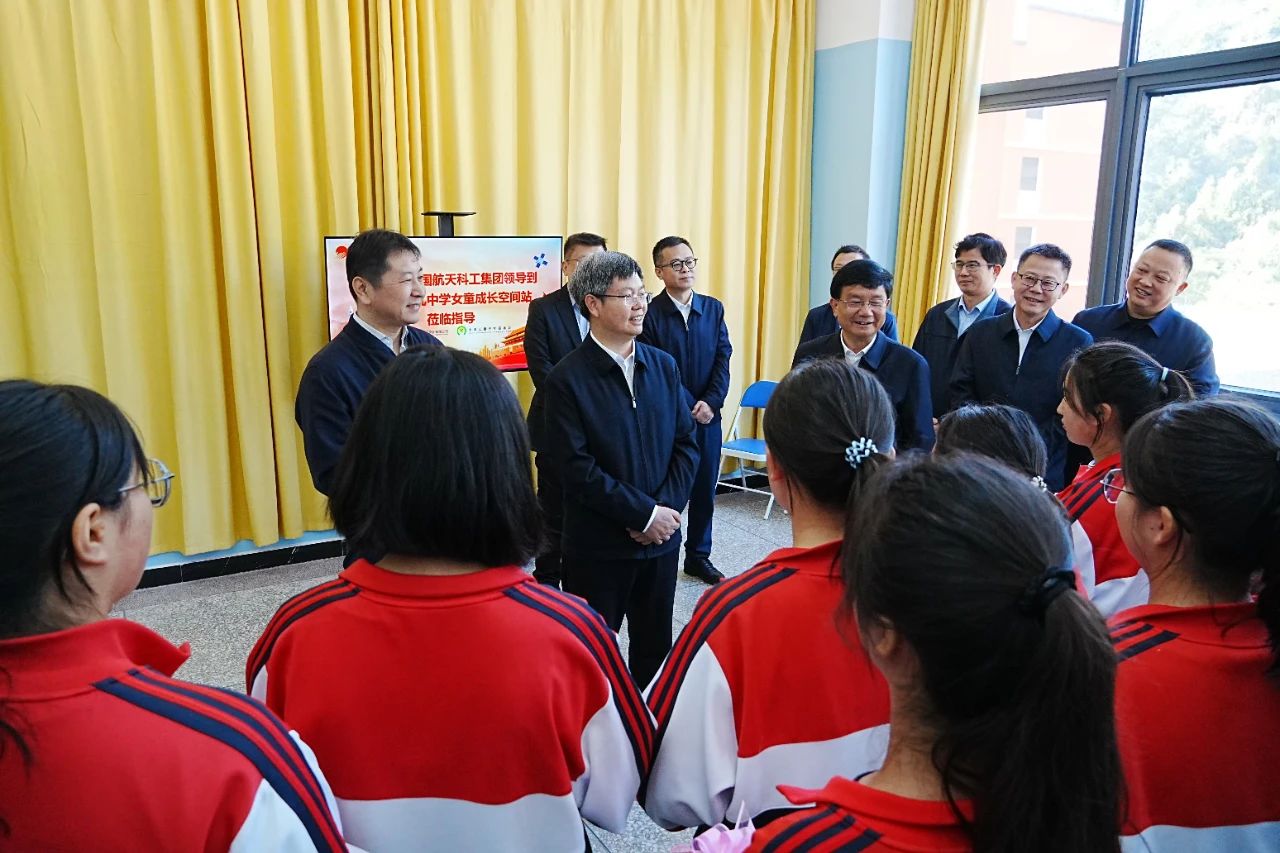 隨后,陳錫明一行前往富源縣第九中學(xué),調(diào)研航天·筑夢(mèng)“春蕾計(jì)劃”公益項(xiàng)目。為積極響應(yīng)“春蕾計(jì)劃—夢(mèng)想未來(lái)”行動(dòng)提升推進(jìn)工作倡議,2022年,航天科工攜手全國(guó)婦聯(lián)、中國(guó)兒基會(huì)共同發(fā)起航天·筑夢(mèng)“春蕾計(jì)劃”公益項(xiàng)目。該項(xiàng)目將于2023-2025年在東川區(qū)、富源縣兩地實(shí)施,通過為困難家庭女童提供學(xué)業(yè)資助、建設(shè)女童成長(zhǎng)空間站、組織女童到航天科工相關(guān)單位開展社會(huì)實(shí)踐、邀請(qǐng)女科技工作者開展成長(zhǎng)指導(dǎo)服務(wù)等,助力女童健康成長(zhǎng)、全面發(fā)展。截至目前,航天·筑夢(mèng)“春蕾計(jì)劃”公益項(xiàng)目已經(jīng)在東川區(qū)和富源縣的中小學(xué)校建成20個(gè)航天·筑夢(mèng)女童成長(zhǎng)空間站,開展女童科技素養(yǎng)提升、青春期健康教育、心理健康輔導(dǎo)等關(guān)愛服務(wù)活動(dòng)200余場(chǎng)次,惠及女童及家庭約10萬(wàn)人次。