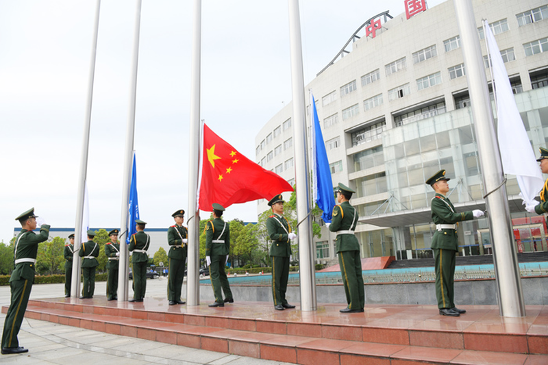 上午8時,升旗儀式開始。伴隨著雄壯激昂的國歌及航天科工之歌,五星紅旗和集團公司司旗先后升起。辦公樓前排成整齊隊伍的干部職工精神抖擻,肅然而立,行注目禮。