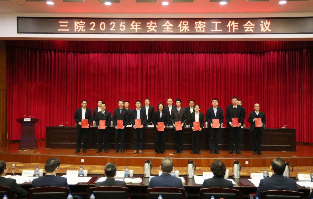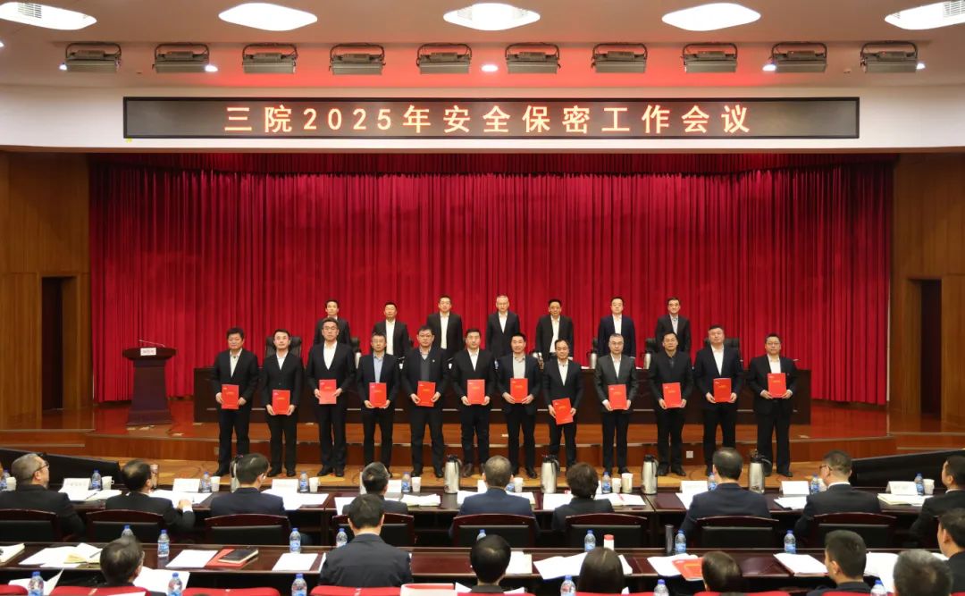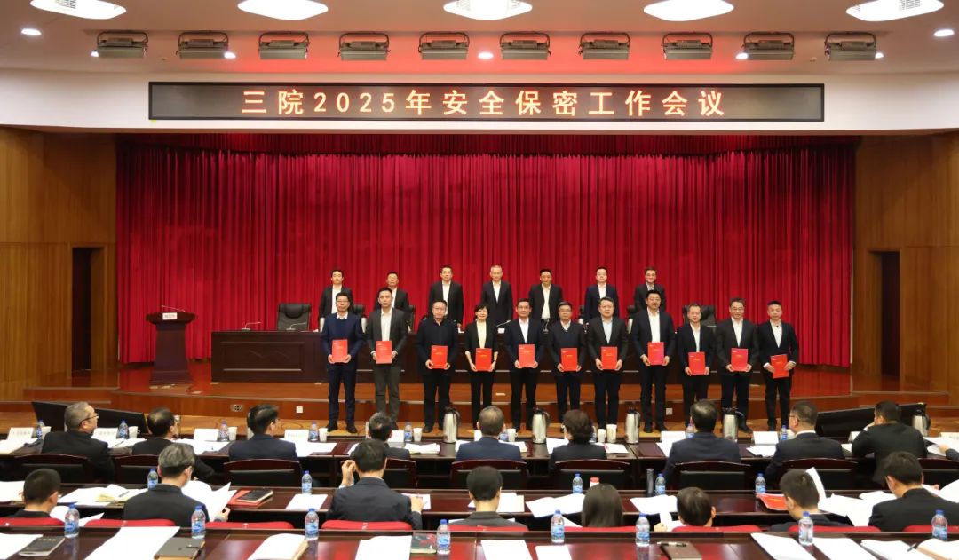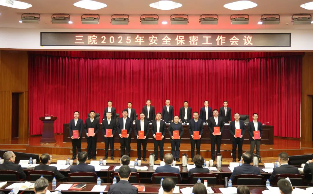 會議作了題為《強化問題導向 提升治理能力 以高水平安全促進高質量發展》的安全保密工作報告,宣讀了三院2024年度安全生產、保密、保衛工作先進表彰的決定,通報了三院2024年《安全保密責任書》考核完成情況,并作2025年《安全保密責任書》說明。院領導向三級單位黨政主要負責人頒發了2025年《安全保密責任書》。