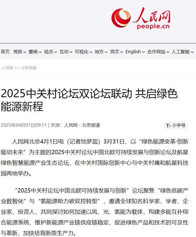 3月31日,以“綠色能源變革·創(chuàng)新驅(qū)動未來”為主題的2025中關(guān)村論壇中國北歐可持續(xù)發(fā)展與創(chuàng)新論壇及航星綠色智慧能源產(chǎn)業(yè)生態(tài)論壇,在中關(guān)村國際創(chuàng)新中心與航天三院239廠航星科技園兩地成功舉辦。