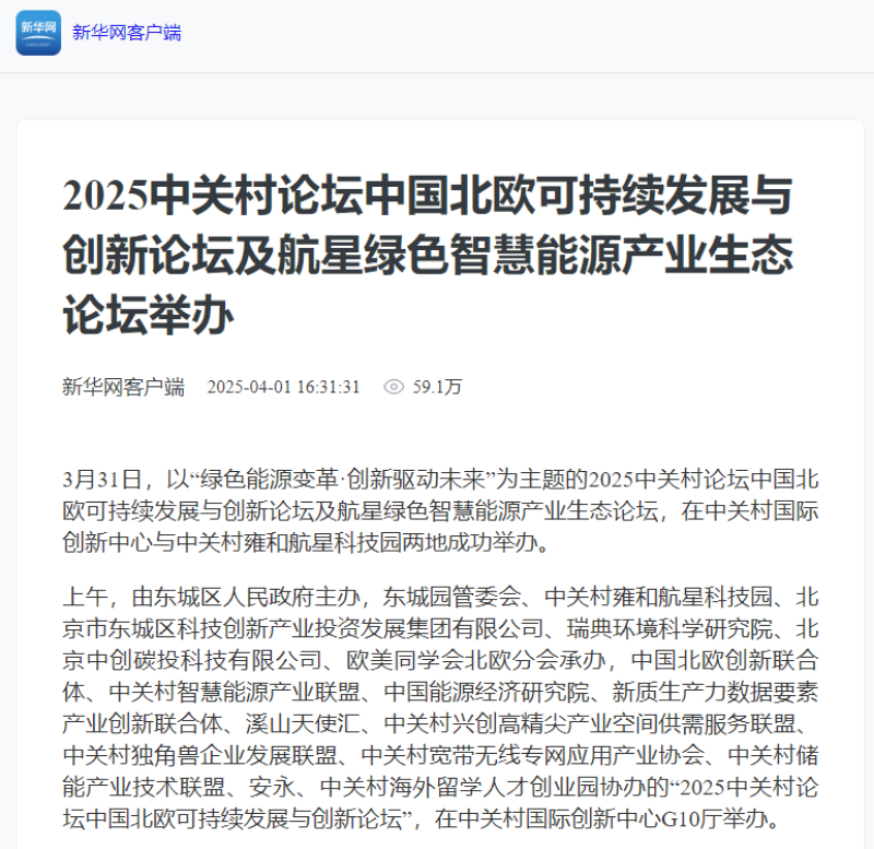 截至2025年4月10日,全網(wǎng)媒體“2025中關(guān)村論壇中國北歐可持續(xù)發(fā)展與創(chuàng)新論壇”及“航星綠色智慧能源產(chǎn)業(yè)生態(tài)論壇”相關(guān)報(bào)道信息76篇,微信、微博及門戶閱讀量800萬+,曝光量1200萬+,為行業(yè)及社會創(chuàng)造價值。