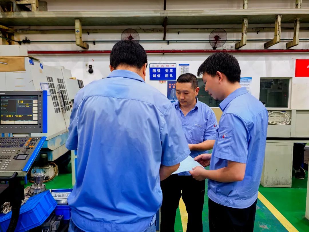 航天群建精密傳動車間齒形班組拿出“拼”的干勁和“搶”的狀態, 全力突擊推進生產進度。班組主要負責車間插齒、滾齒等齒形加工工序,經手的產品零星復雜且試制新品居多,為保障生產任務順利進行,班組通過每日班前會檢點前日工作完成情況、細化當日目標任務,奮力沖刺完成好年度目標任務。