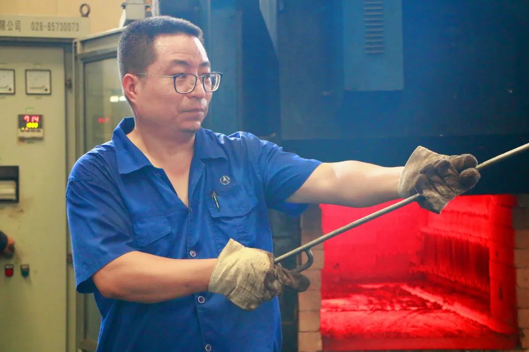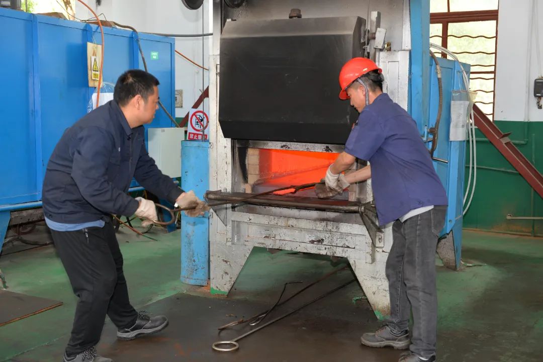近期,生產任務繁忙,紅林公司的熱處理車間開啟“燒烤”模式。正火、退火、回火、淬火……工人師傅們嚴格按照工藝要求進行熱處理,確保產品性能符合要求。圖為熱處理班組師傅正在檢修加熱爐。(圖文/張旺)