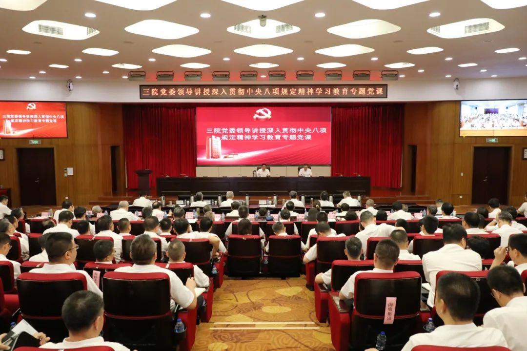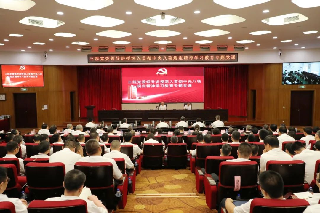 7月4日下午,航天三院黨委書記施毅、院長程進講授深入貫徹中央八項規定精神學習教育專題黨課,與黨員干部職工再學習習近平總書記關于黨的作風建設的重要論述,貫徹落實集團公司系列重要會議精神和黨組書記陳錫明同志學習教育專題黨課精神,團結動員廣大黨員干部職工以優良作風奮力開創三院高質量發展新局面。三院全體在家院領導、院科技委領導,院本部各部門(機構)負責人,院屬三級、四級單位領導班子成員,三院全體副處級及以上領導人員參加會議。