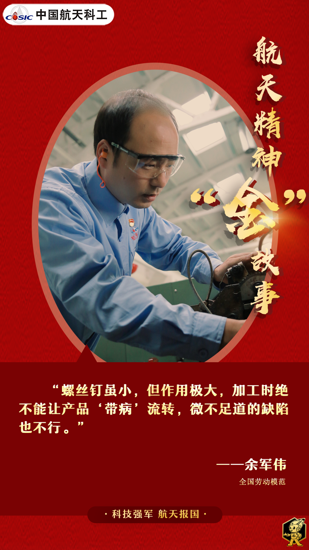 航天“萬人一桿槍”,人人都是螺絲釘。即便微小如螺絲釘,也都有機(jī)會圓夢“飛天”。但想要“上天”,必須做到嚴(yán)慎細(xì)實,必須做到“百萬無一失”,努力將錘煉人品融入鍛造產(chǎn)品,做到品質(zhì)杠杠的,性能棒棒噠,無論“i人e人、濃人淡人”,都能成就精彩人生。