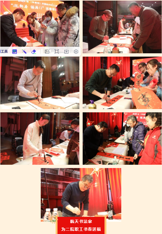 來自中國航天書法家協會、中國公安書法家協會、中國金融書法家協會的書法家以及航天科技五院、九院和航天科工二院、三院的七位航天書法家為二院職工送來了新春的祝福。
