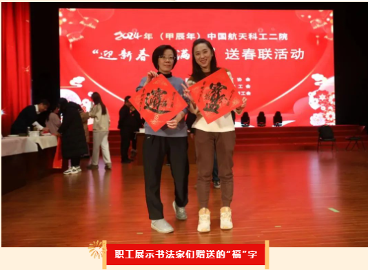 近日,在甲辰年新春佳節即將到來之際,為進一步激發廣大職工建功新時代、建設航天強國的豪情,營造喜慶和諧、健康文明的濃郁節日氣氛,由中國航天書法家協會主辦,中國航天科工二院工會承辦,203所工會協辦的2024年“迎新春 福滿門”送春聯活動在二院職工文化中心隆重舉行,為廣大職工群眾送上了新春祝福,傳遞了節日喜悅。