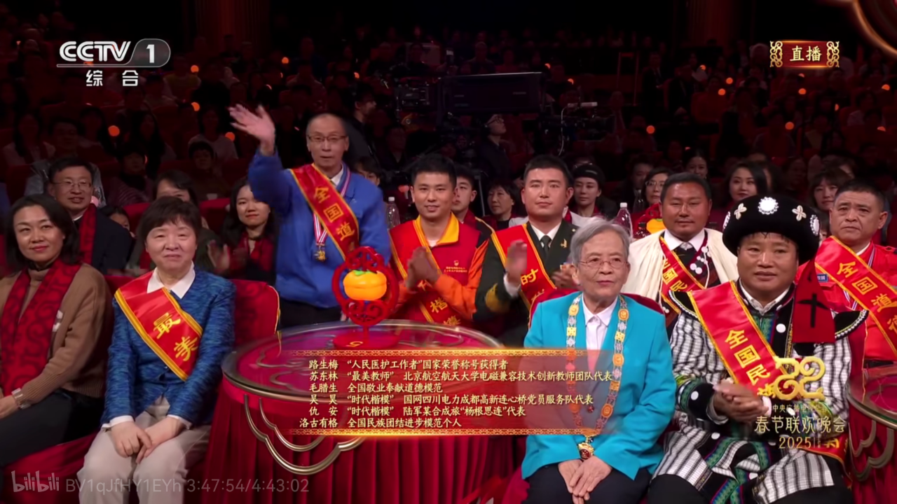 在2025年總臺春晚中有一個十分暖人的環節,“人民醫護工作者”國家榮譽稱號獲得者代表、“最美教師”榮譽稱號獲得者代表、全國敬業奉獻道德模范代表等,向全國人民拜年。