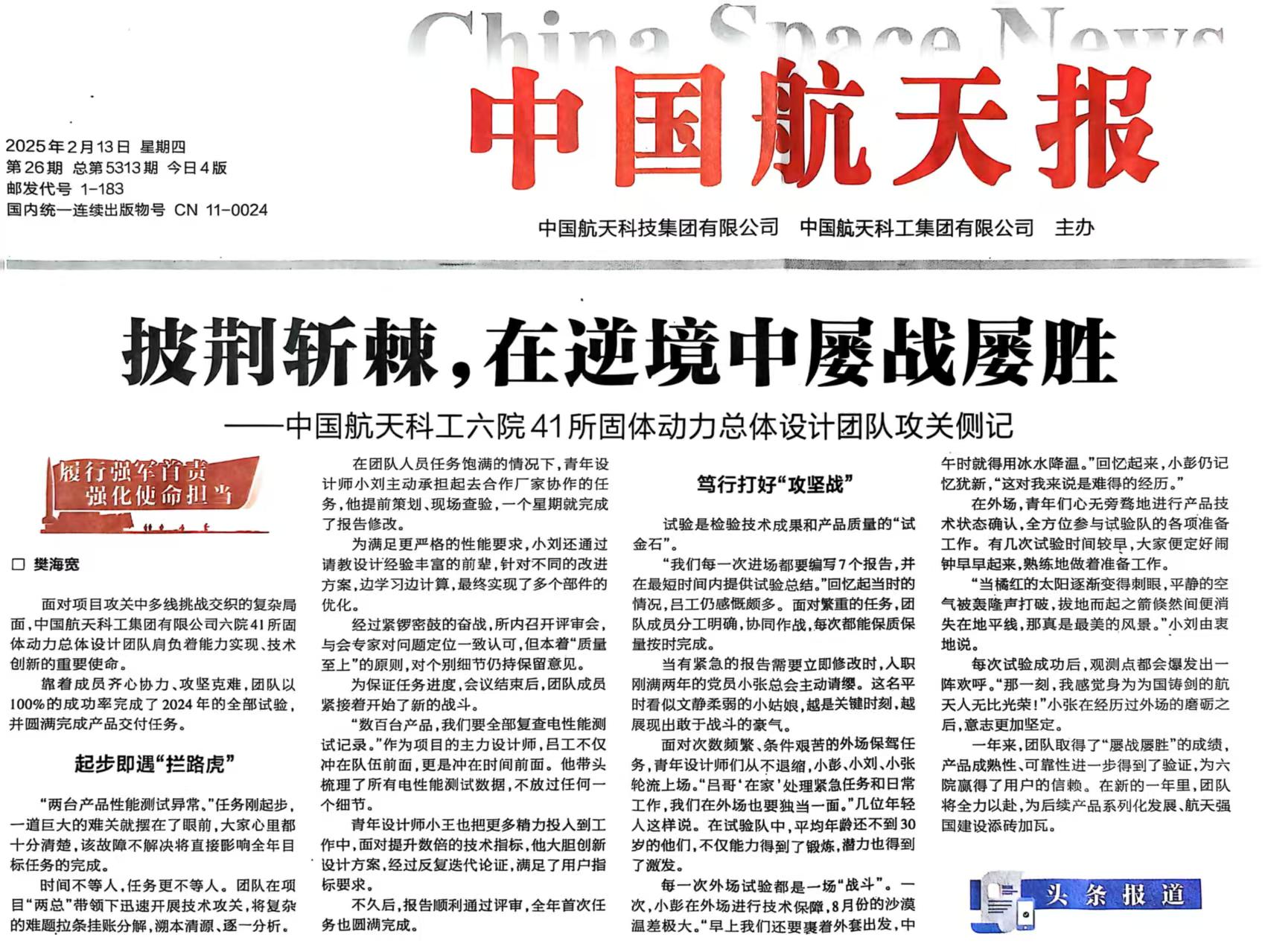 一年來(lái),團(tuán)隊(duì)取得了“屢戰(zhàn)屢勝”的成績(jī),產(chǎn)品成熟性、可靠性進(jìn)一步得到了驗(yàn)證,為六院贏得了用戶(hù)的信賴(lài)。在新的一年里,團(tuán)隊(duì)將全力以赴,為后續(xù)產(chǎn)品系列化發(fā)展、航天強(qiáng)國(guó)建設(shè)添磚加瓦。(文/樊海寬)