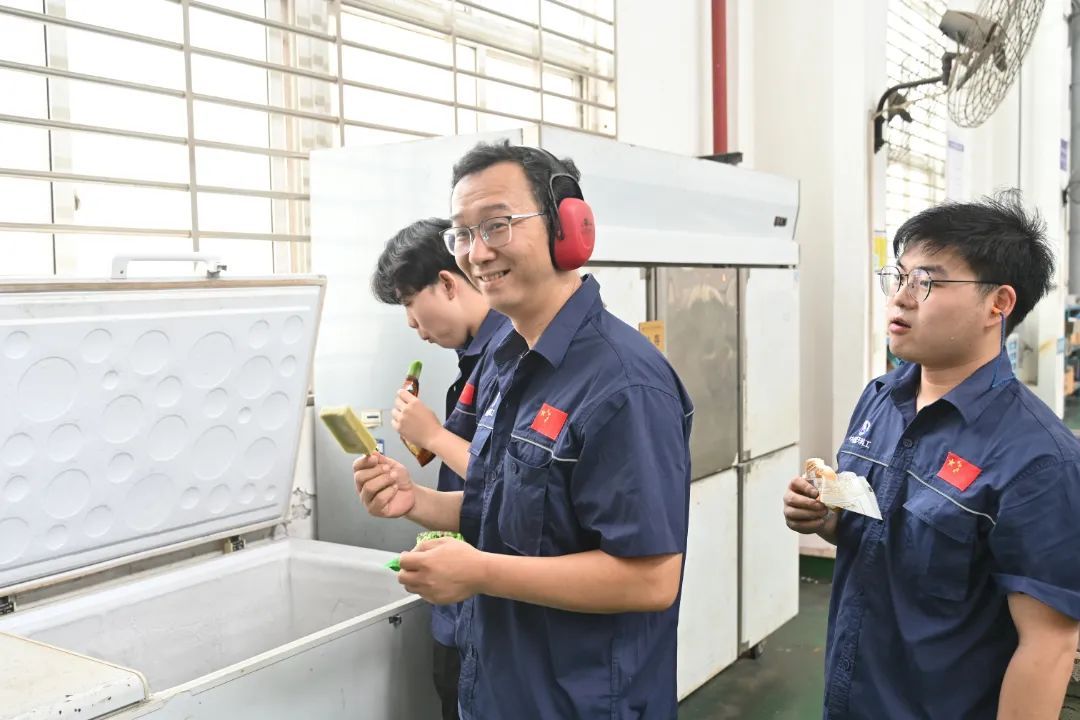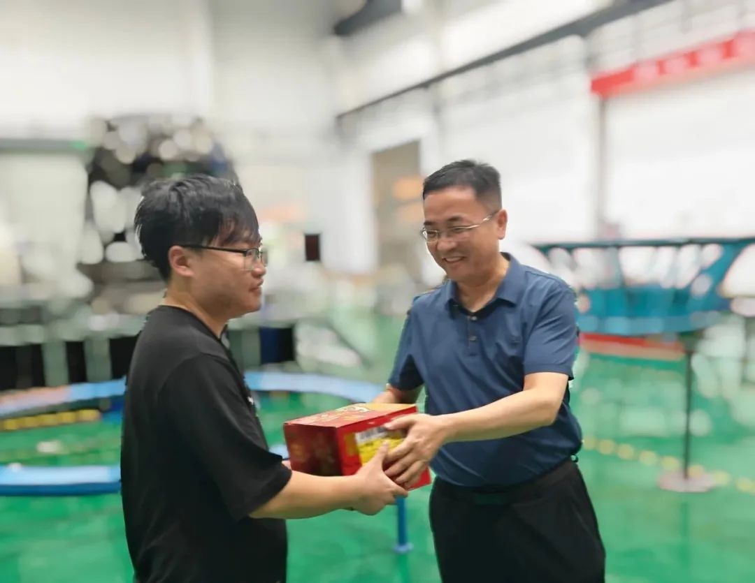 高輝文一行現場詢問各項試驗開展情況,詳細了解各項任務進展和后續工作計劃,與項目負責人和作業人員進行交流,對產品設計和工藝提出優化建議。在試驗廠房,高輝文親切詢問技能人員高溫天氣下的作業情況,囑咐大家做好個人防護,并送上防暑降溫物資。(圖文/唐詩)