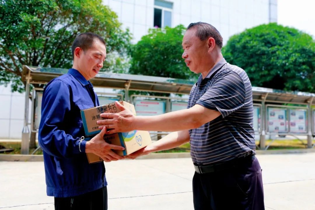 為應對安全生產挑戰、保障一線職工平安度夏,江北公司分批次向一線職工發放冰棍、藥品等防暑物資,并以此為抓手改善職工高溫作業環境,為“江北人”撐起關愛之傘,共促企業發展。圖為公司工會工作人員為車間職工送去降溫物資。(圖文/黃家騰)