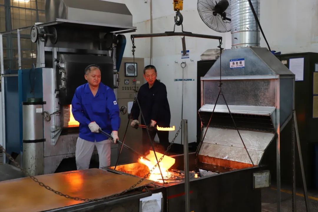 近日,紅峰公司為各部門補充防暑降溫藥品,高溫崗位實行錯峰作業,工人每天避開高溫時段,提前上班,推遲下班,保障職工健康安全。左圖為公司熱處理車間工人進行錯峰作業。(圖/蘭漸霞 文/胡楊)