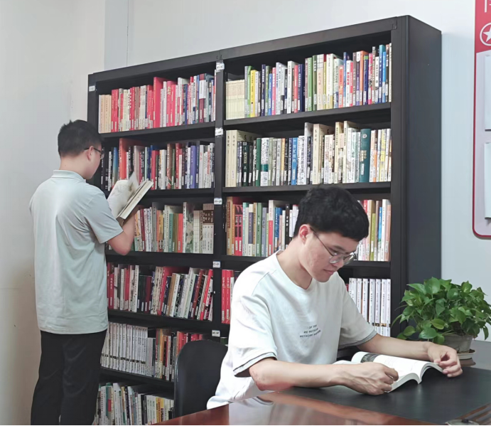 圖書角里,專業書籍、文學名著整齊排列,技術部門小李表示:“上次項目遇難題,來這里翻書找靈感,和同事一聊,思路就有了。”